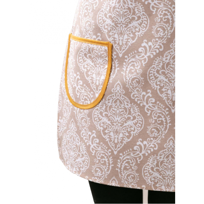 Фартух виготовлений ​​із якісного матеріалу з тефлоновим покриттям, що має водовідштовхувальні властивості та стійкий до забруднень. Легкий догляд, прання при температурі 40 градусів, швидко сохне і піддається прасуванню.