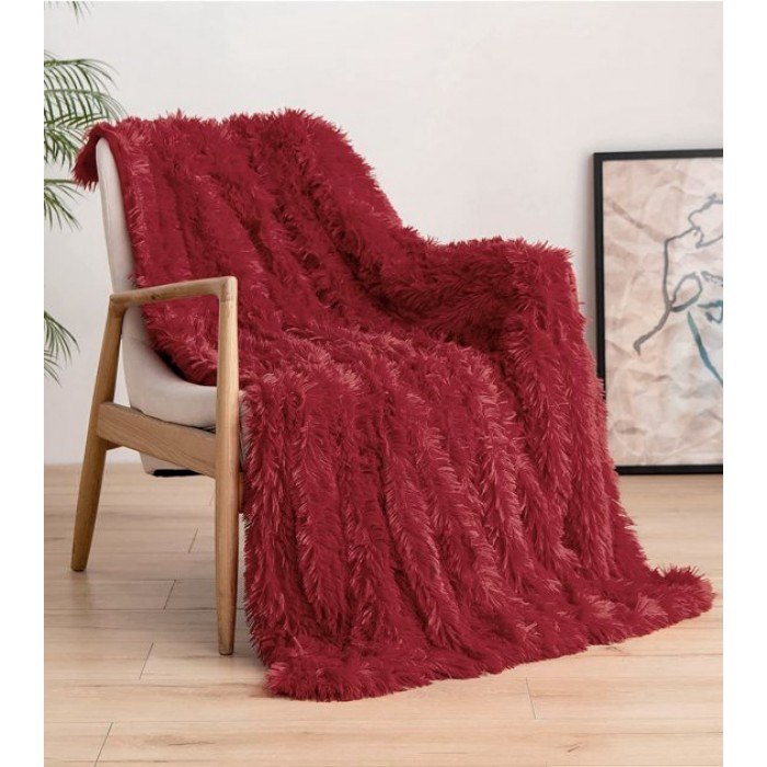 Плед Травка Хутряне Покривало з довгим ворсом євро розмір 210*230 см Бордо