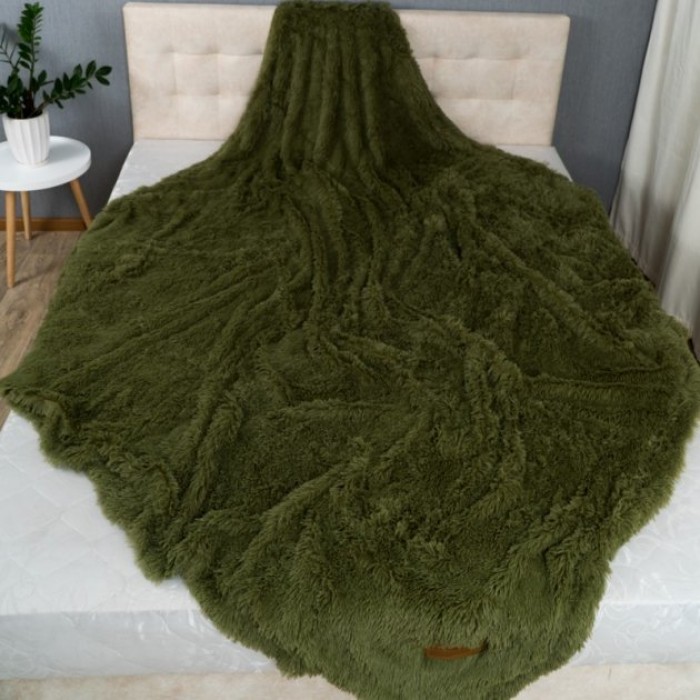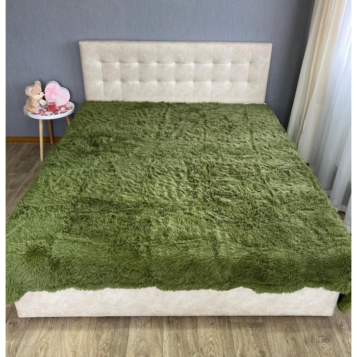 Плед Травка Хутряне Покривало з довгим ворсом євро розмір 210*230 см Зелений