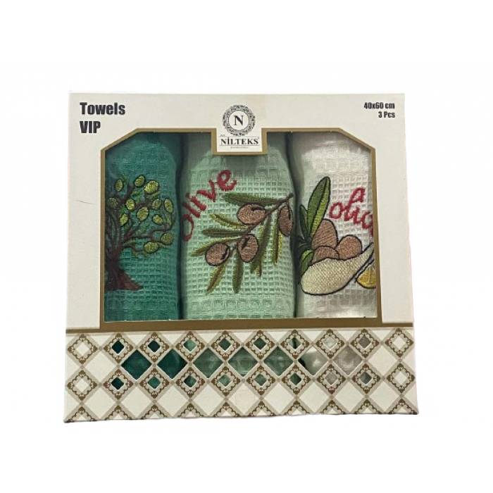 Подарунковий набір кухонних рушників Вафельне полотно 3 шт Туреччина 40*60 см Olive
