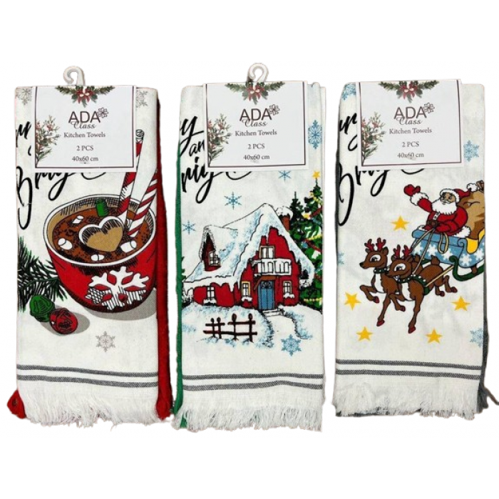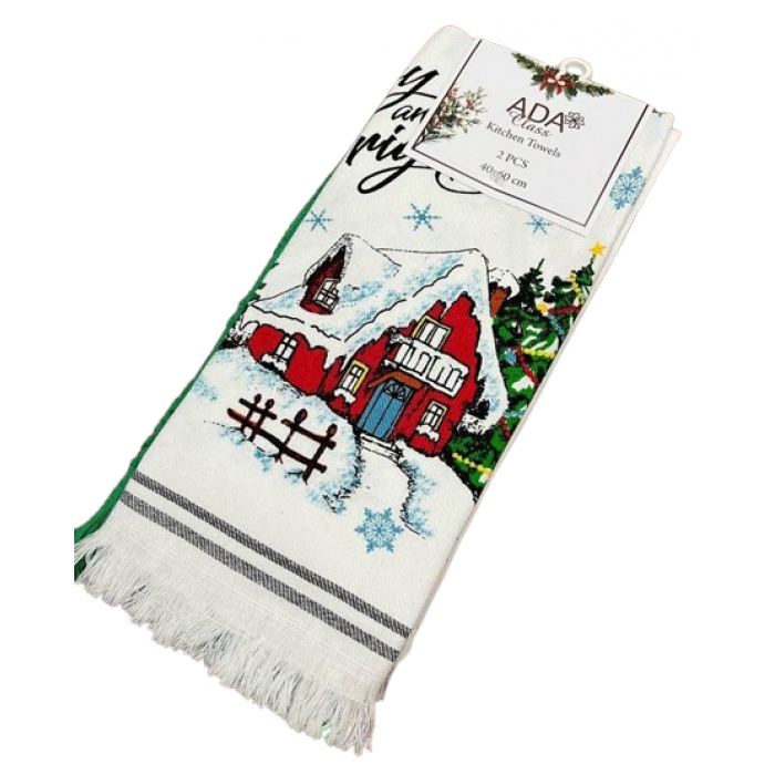 Подарунковий набір Новорічних рушників високої якості. Рушники кухонні 40*60 см, один з лляний, а інший - махровий. Добре вбирають вологу, гіпоалергенний матеріал. Рушники не вимагають особливого догляду, добре перуться, не линяють, вбирають вологу і швидко сохнуть. В упаковці 2 шт (Льон/Махра)