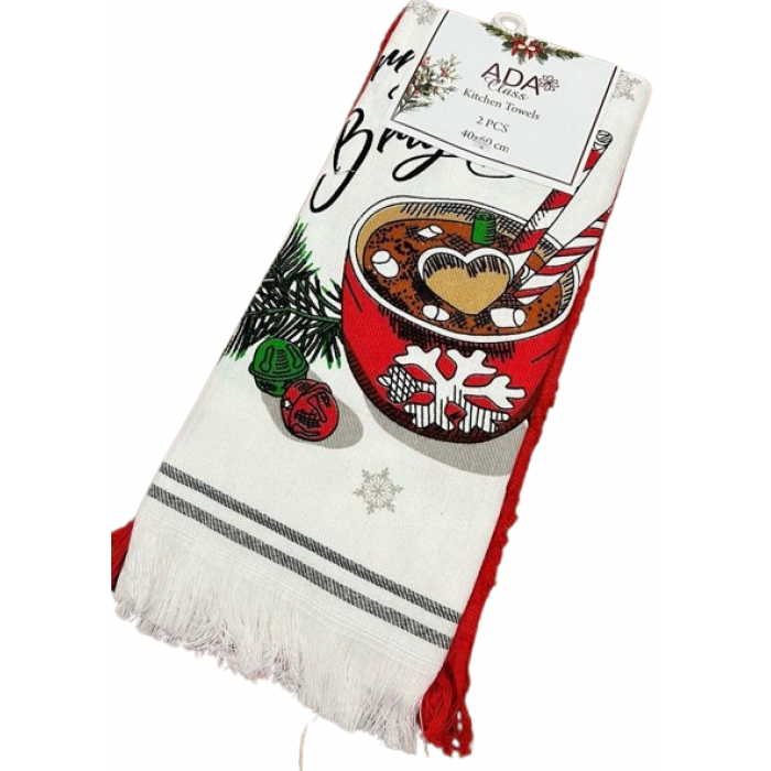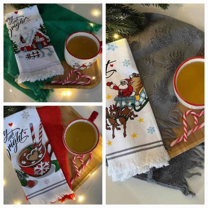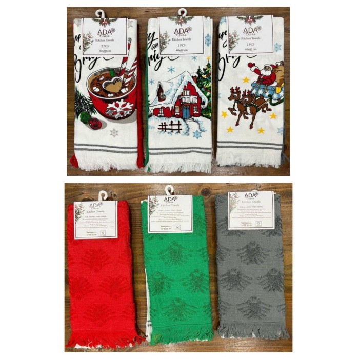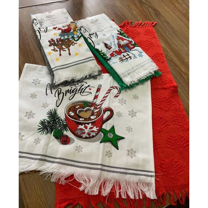 Подарунковий набір Новорічних рушників високої якості. Рушники кухонні 40*60 см, один з лляний, а інший - махровий. Добре вбирають вологу, гіпоалергенний матеріал. Рушники не вимагають особливого догляду, добре перуться, не линяють, вбирають вологу і швидко сохнуть. В упаковці 2 шт (Льон/Махра)