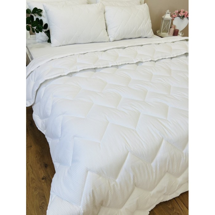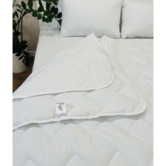 Это лёгкое, мягкое и теплое одеяло является многосезонным и может быть использовано как зимой так и летом. Одеяло «4 сезона» состоит из двух, фиксированных между собой частей: более объемного теплого одеяла и тонкого летнего одеяла, скрепленных между собой кнопками. При необходимости их можно использовать отдельно друг от друга. Одеяло простегано в виде фигурных ромбов, это обеспечивает равномерность распределения утеплителя и сохраняет его целостность в процессе эксплуатации. Ткань одеяла – Микрофибра. Материал хорош в эксплуатации, не дает усадку и сохраняет первоначальный вид после многократных стирок. Одеяла и подушки, наполненные данным видом волокна, не имеют запаха, не притягивают пыли, не вызывают аллергических реакций.