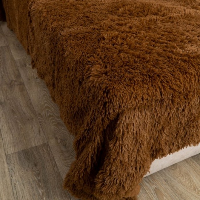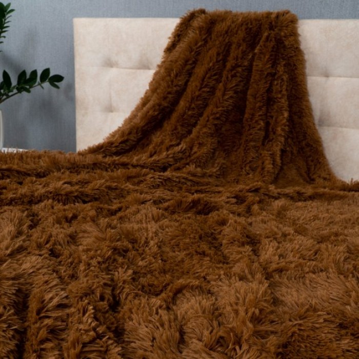 Плед покрывало с длинным ворсом Травка полуторный размер 160*210 Коричневый