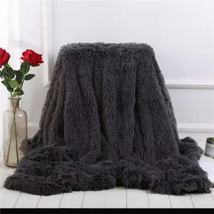 Плед Травка Меховое Покрывало с длинным ворсом евро размер 210*230 см Графит