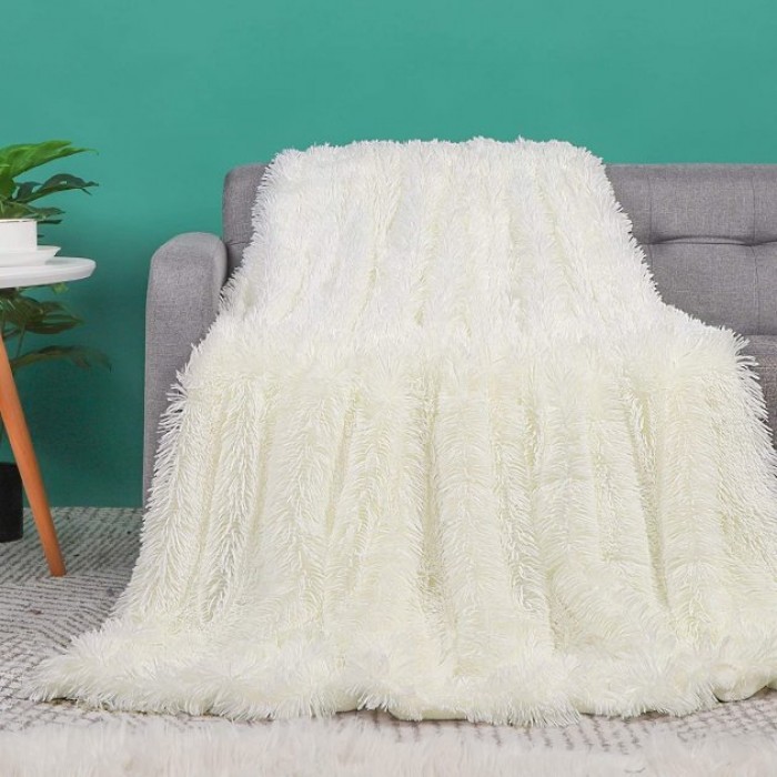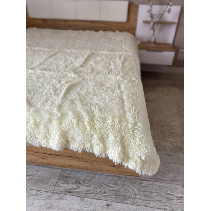 Плед Травка Меховое Покрывало с длинным ворсом евро размер 210*230 см Молочный