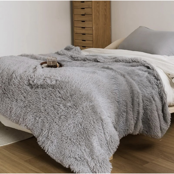 Плед Травка Меховое Покрывало с длинным ворсом евро размер 210*230 см Серый