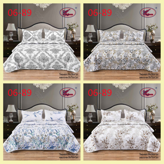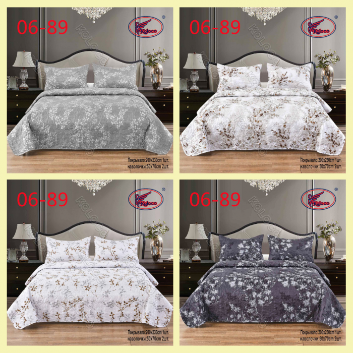 Размеры: Покрывало - 200 х 230 см, Наволочки - 50 х 70 см.