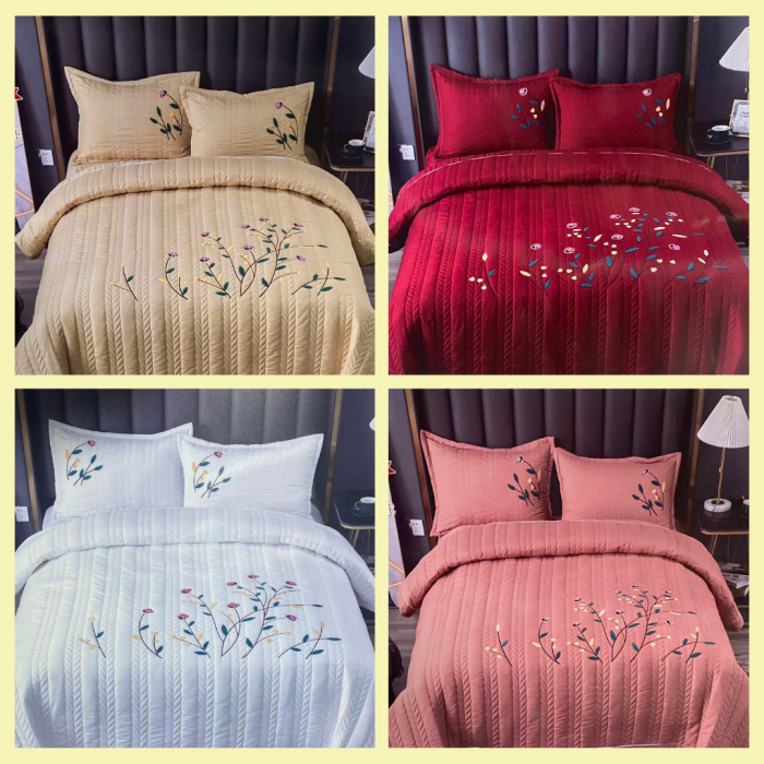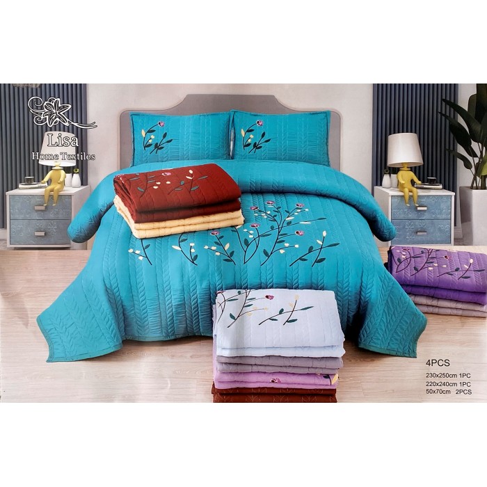 Бавовняна постільна білизна є чудовим вибором для створення комфортної та затишної атмосфери у вашій спальні. Виготовлено зі 100% натурального матеріалу - бавовни, що забезпечує м'якість та приємність на дотик. Цей комплект складається з покривала в розмірі 230*250 см, простирадла в розмірі 240*200 см і 2 наволочки розміром 50/70 см, які доповнюють стильний вигляд комплекту.