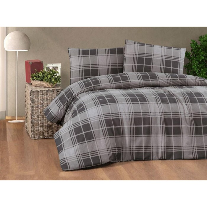 Постельное белье Байка Теплая Постель Фланель евро размер 200*220 Турция Клетка Серый
