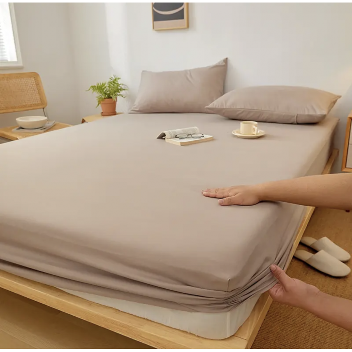 Простынь на резинке Хлопок трикотажная Простынь на матрас 160*200 с наволочками 50*70 см Бежевый