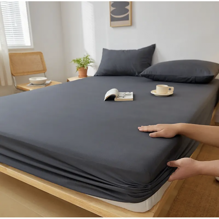 Простынь на резинке Хлопок трикотажная Простынь на матрас 160*200 с наволочками 50*70 см Графит