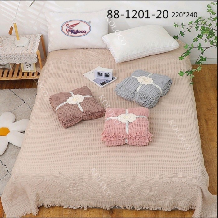 Натуральное Хлопковое покрывало "Koloco" это комфорт и экологически чистые натуральные волокна. Покрывало изготовлено по инновационной технологии, которая придает изделиям исключительную мягкость, легкость и объем, и является экологически безопасным, поэтому рекомендуется аллергикам. Покрывало прекрасно впитывает влагу и пропускает воздух, поэтому подарит вам максимальный комфорт во время сна.