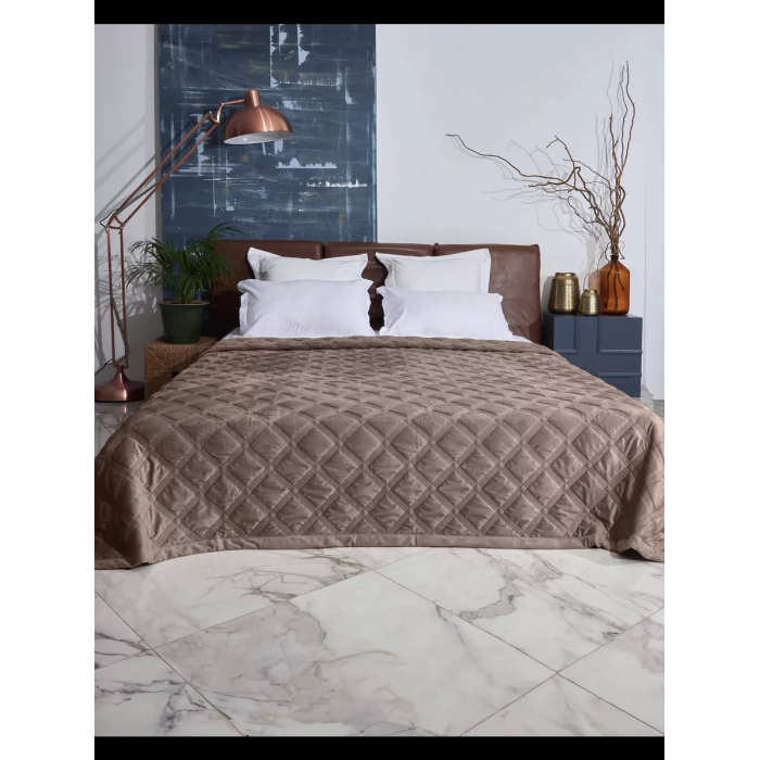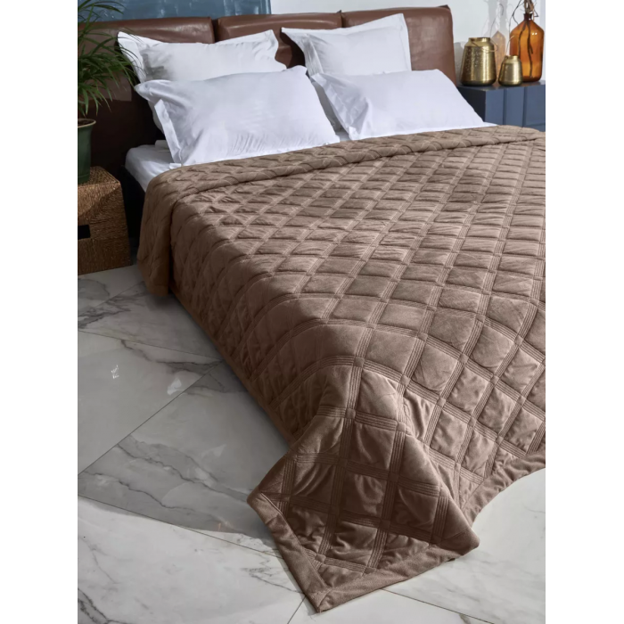 Покрывало высокого качества из велюра. Комплект покрывало с наволочками предаст изысканность Вашей спальне или гостинной и подарит особую атмосферу уюта. Насыщеный цвет, новый дизайн подчеркивет фактуру ткани на покрывале. Он не выцветает, долго сохраняет яркие цвета и не проникает в воду, придавая вашей спальне цвет и элегантность. Отлично подойдет на подарок дорогим и близким людям. В комплекте покрывало 1 шт. Размеры: Покрывало - 210 х 230 см