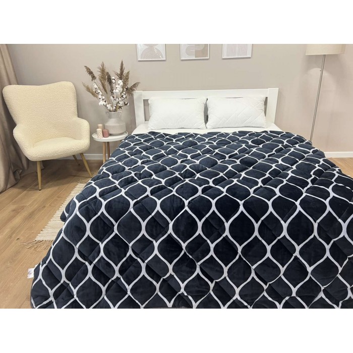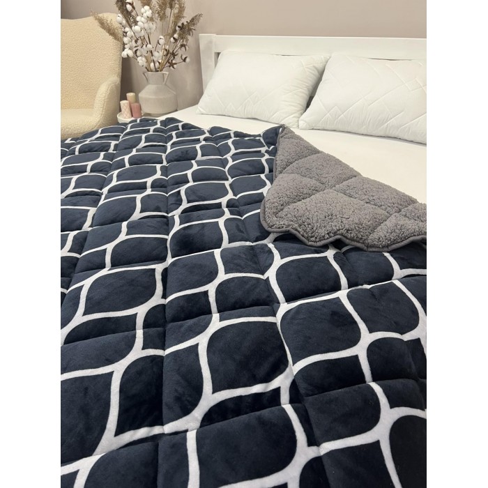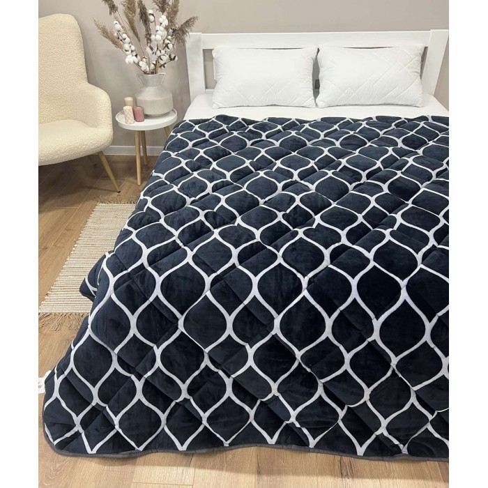 Ковдра-покривало високої якості, основа покривала велюр високої щільності, лицьова сторона з брендованим принтом, виворітна сторона виконана зі штучного хутра. Ковдра стьобана по всій площині, заповнення Холофайбер. Може використовуватися як покривало або як ковдру в підковдру. Матеріал ковдри відмінної якості не дає усадки навіть при тривалому використанні, при необхідності можна прати у пральній машинці. Колірна палітра представлена в природних, спокійних, натуральних відтінках, які створять гармонію у вашому інтер'єрі. Така ковдра - покривало стане чудовим подарунком даруючи затишок і тепло. Упаковка ПВХ.
